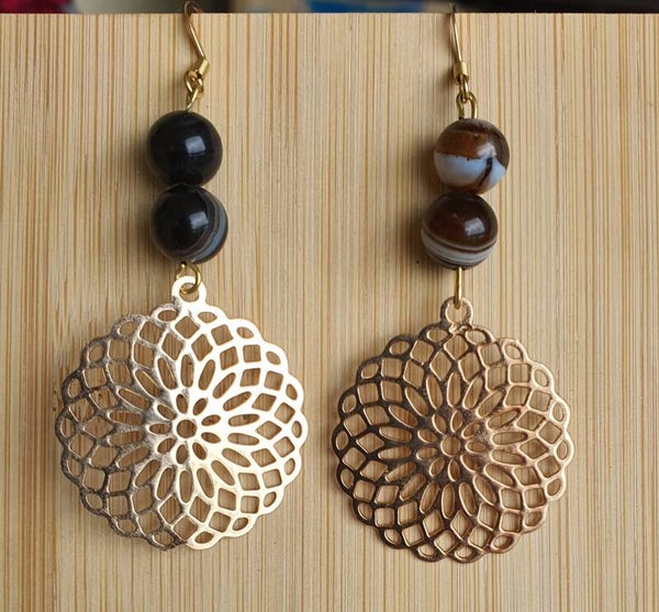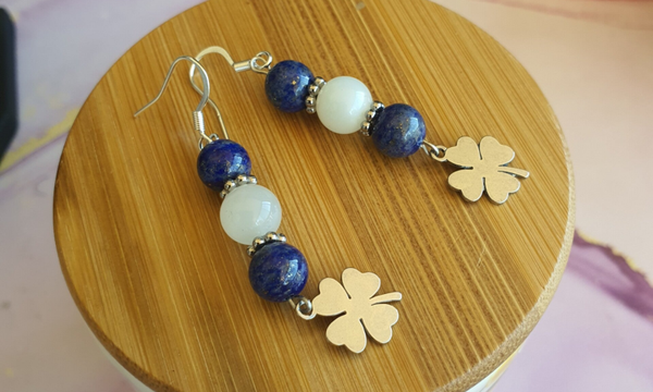 Boucles d'oreilles en acier inoxydable, perles, pierres de lithothérapie et breloques.